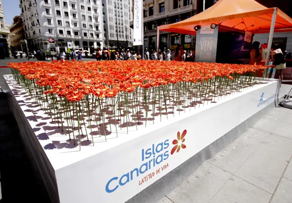 Desde un stand de 100 metros cuadrados atendido por nuestras promotoras y ubicado en la madrileña céntrica  Plaza de Callao y decorado con más de 7.000 flores, se repartirán más de 10.000 fulares, en forma de flor, durante este fin de semana, invitando a los transeúntes a visitar nuestras Islas en cualquier época del año para disfrutar de sus agradables temperaturas. La iniciativa permitirá, además, recabar información de miles de madrileños para enriquecer la base de datos de Turismo de Canarias y poder establecer una relación directa con ellos.