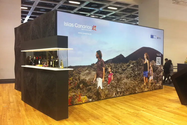 Los productos turísticos de las islas se repartían en un volumen central consistente en cuatro pantallas multitáctiles para manipular fotografías, vídeos y todo tipo de documentos y programas. Se trata de un recurso lúdico, atractivo y dinamizador de última generación que permite dinamizar el stand y atraer visitantes. La diversidad paisajística y natural de las Islas también se reflejaba en el espacio con el que el destino turístico Islas Canarias se presentó en esta feria, una de las más importantes del mundo junto a Fitur y la WTM de Londres.