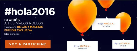Estos son días de nuevos propósitos y, sobre todo, de dejar atrás lo negativo de este año que está a punto de finalizar. Con esta idea, Promotur Turismo de Canarias ha ideado una simpática acción promocional que consiste en dejar un mensaje en el que nos despedimos de “lo malo” del 2015 en el site vuelveabrillar.com, la plataforma de reposicionamiento de la marca Islas Canarias para los mercados clave, es decir, aquellos mercados maduros donde la presencia de nuestro destino turístico está consolidada. Para ello, los participantes tendrán que inflar simbólicamente un globo virtual en el que se colgará dicho mensaje.