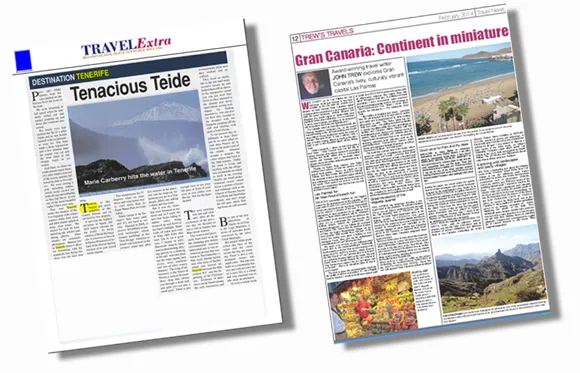 En colaboración con la O.E.T. de Dublín, Turismo de Canarias atendió la visita de varios periodistas representando a medios irlandeses que después de conocer nuestras islas de primera mano, han publicado sus artículos o reportajes dedicados a las islas visitadas. Así, el 1 de enero pasado se publicaron en el periódico turístico irlandés ‘Travel Extra’ dos trabajos dedicados a las islas de Gran Canaria y Tenerife respectivamente, realizados por dos periodistas del citado medio que viajaron a nuestras islas: Eoghan Corry, que visitó Gran Canaria y realizó el artículo ‘Gran Sands’ y Marie Carberry, que viajó a la isla de Tenerife y público su artículo ‘Tenacious Teide’. En la atención de ambos periodistas en las respectivas islas colaboraron el Patronato de Turismo de Gran Canaria y Turismo de Tenerife.