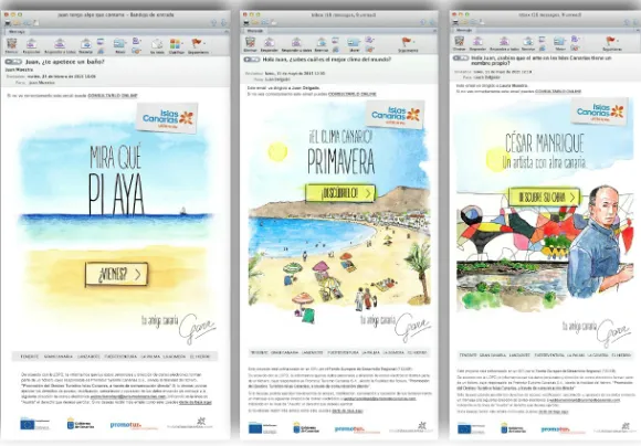 Tras varios meses y un proceso de trabajo complejo, ya se ha completado su puesta en marcha, con lo que la plataforma se encuentra a pleno funcionamiento en los servidores de Turismo de Canarias. El resultado ha sido un producto en el que tecnología y creatividad participan a partes iguales, cualidad imprescindible para desarrollar una adecuada comunicación con los clientes que, en este caso, será “firmada” por una imaginaria amiga canaria, Gara, en un tono muy original y cercano. Así, muchos de los correos electrónicos que se envían a los turistas identificados en la base de datos contienen animaciones que se ejecutan automáticamente, con la idea de que sean mensajes muy atractivos para que los destinatarios compartan estas imágenes y se conviertan en piezas virales.